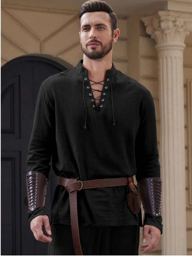 Pero no hace falta que solo miréis con ellos. Paginas como Shein o Aliexpress venden ropa de estilo medieval. Las camisetas con el cuello con cordones. Unos brazaletes de cuero, cinturones. Y ya tienes lo básico para no desentonar.